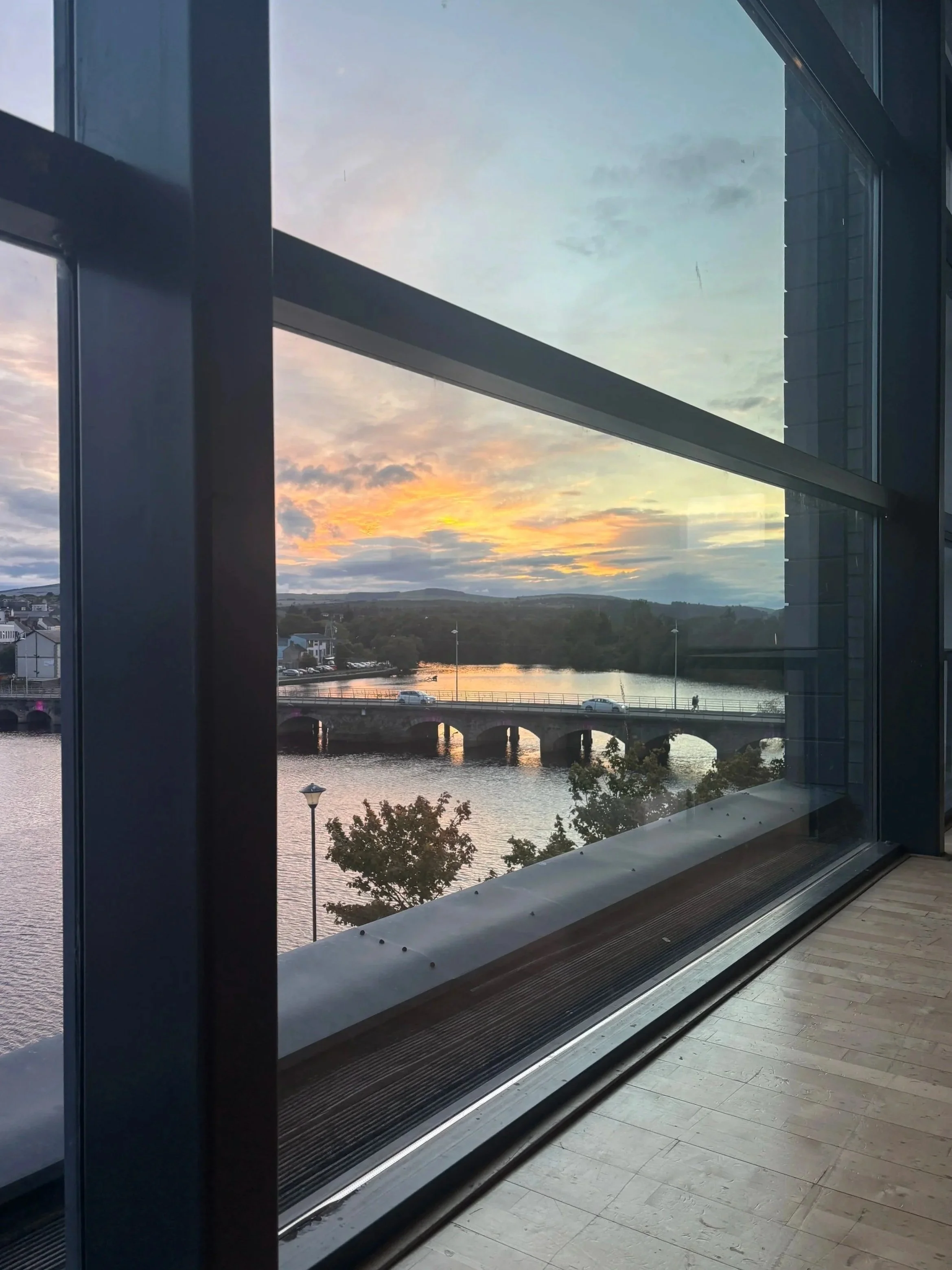 Join me for my weekly in-person yoga classes at the beautiful Studio 55 at the Bridgewater S.C in Arklow. This gorgeous light filled space has floor to ceiling windows overlooking the Avoca River. Each class is accompanied by amazing views, from crisp Spring mornings and stunning Autumn sunsets to stormy Winter skies.